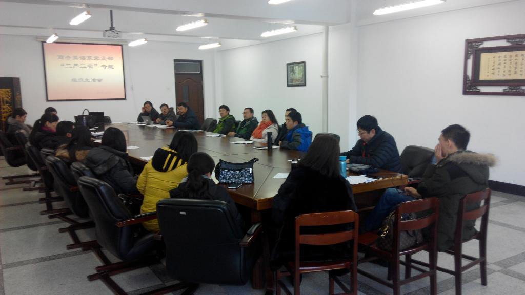 12月17日下午,商务英语系党支部在二楼会议室召开了“三严三实”专题组织生活会。会议以民主生活讨论形式展开,由商务英语系党支部书记于林龙教授主持。与会党员认真地学习了《中国共产党廉洁自律准则》和《中国共产党纪律处分条例》两份文件。林正军院长和商务英语系全体教师同时参加了此次组织活动。