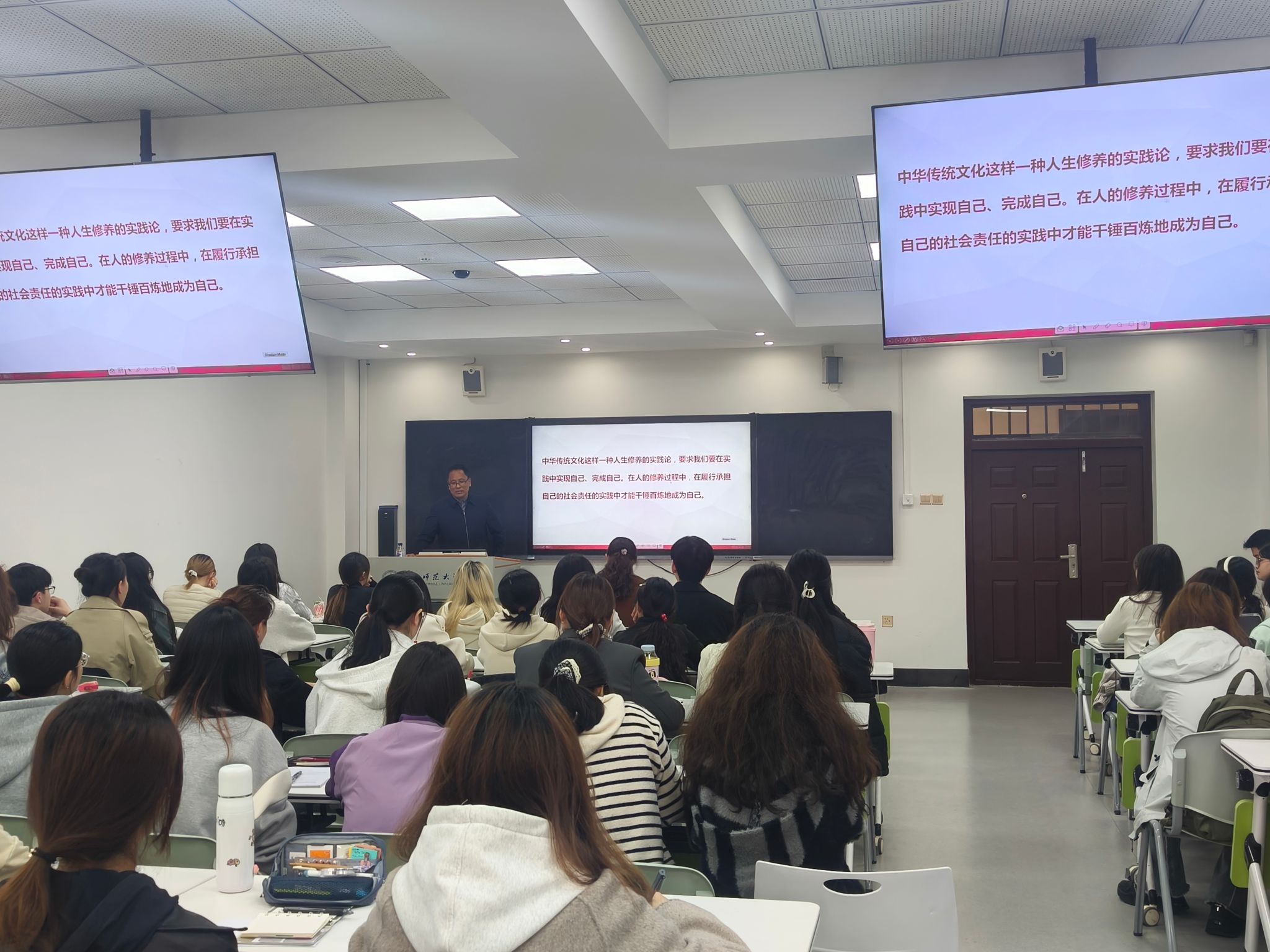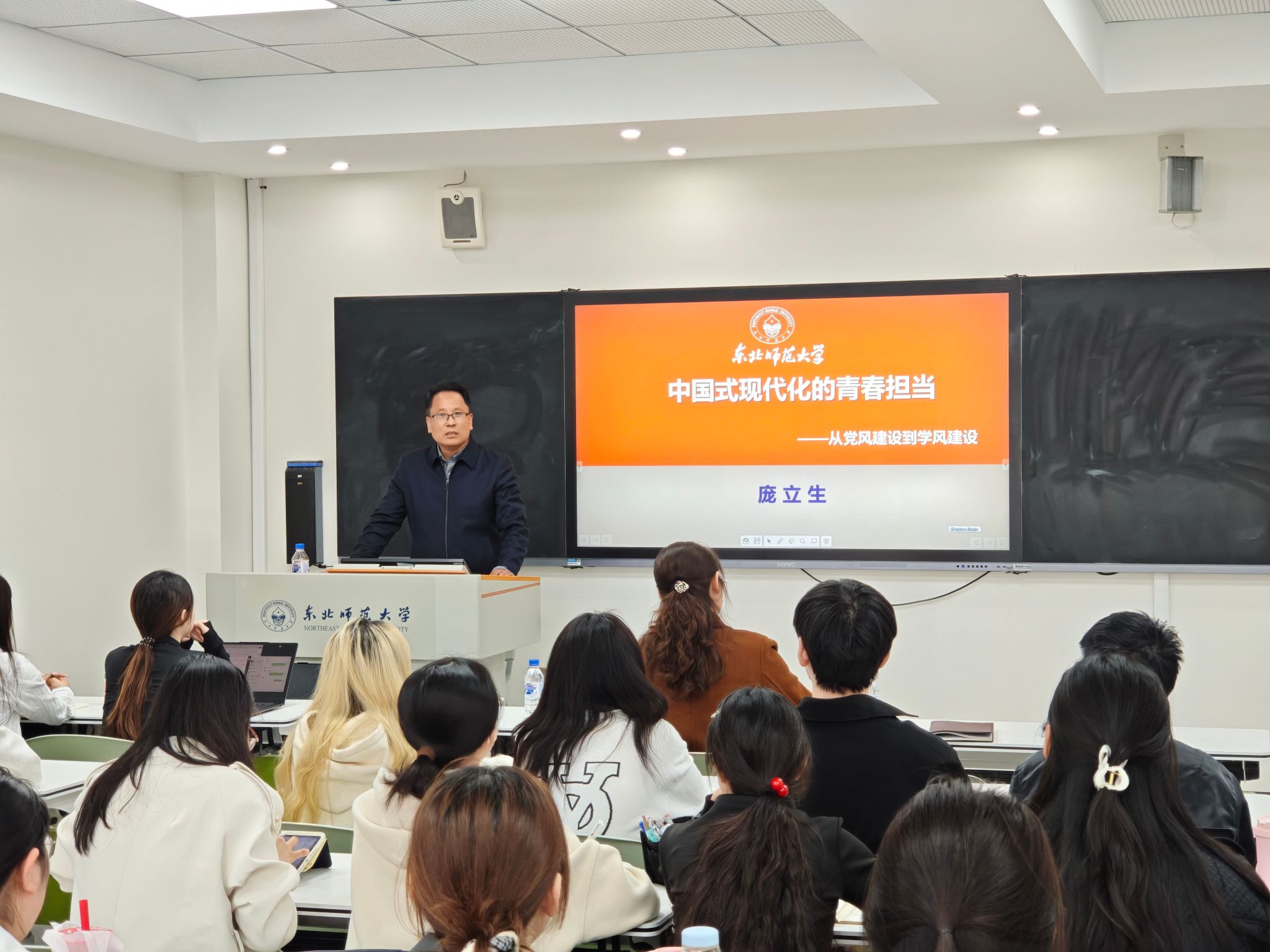 为深入贯彻落实中央八项规定精神,强化党员党性修养与作风建设,4月23日,学校党委副书记、外国语学院党委书记庞立生在净月校区为学院本科生支部全体党员及入党积极分子代表以及学院全体政工干部讲授了“从党风建设到学风建设”的主题党课。外国语学院党委常务副书记商应美参加了本次党课。