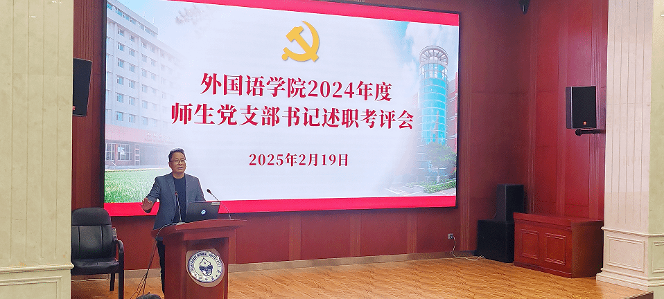 2025年2月19日16时,外国语学院2024年度师生党支部书记述职考评会在图书馆二楼汇报厅召开。中共东北师范大学机关委员会书记赵建立同志、外国语学院全体党员参与会议,会议由学院党委副书记兼副院长仇云龙主持。会议分为两项流程。