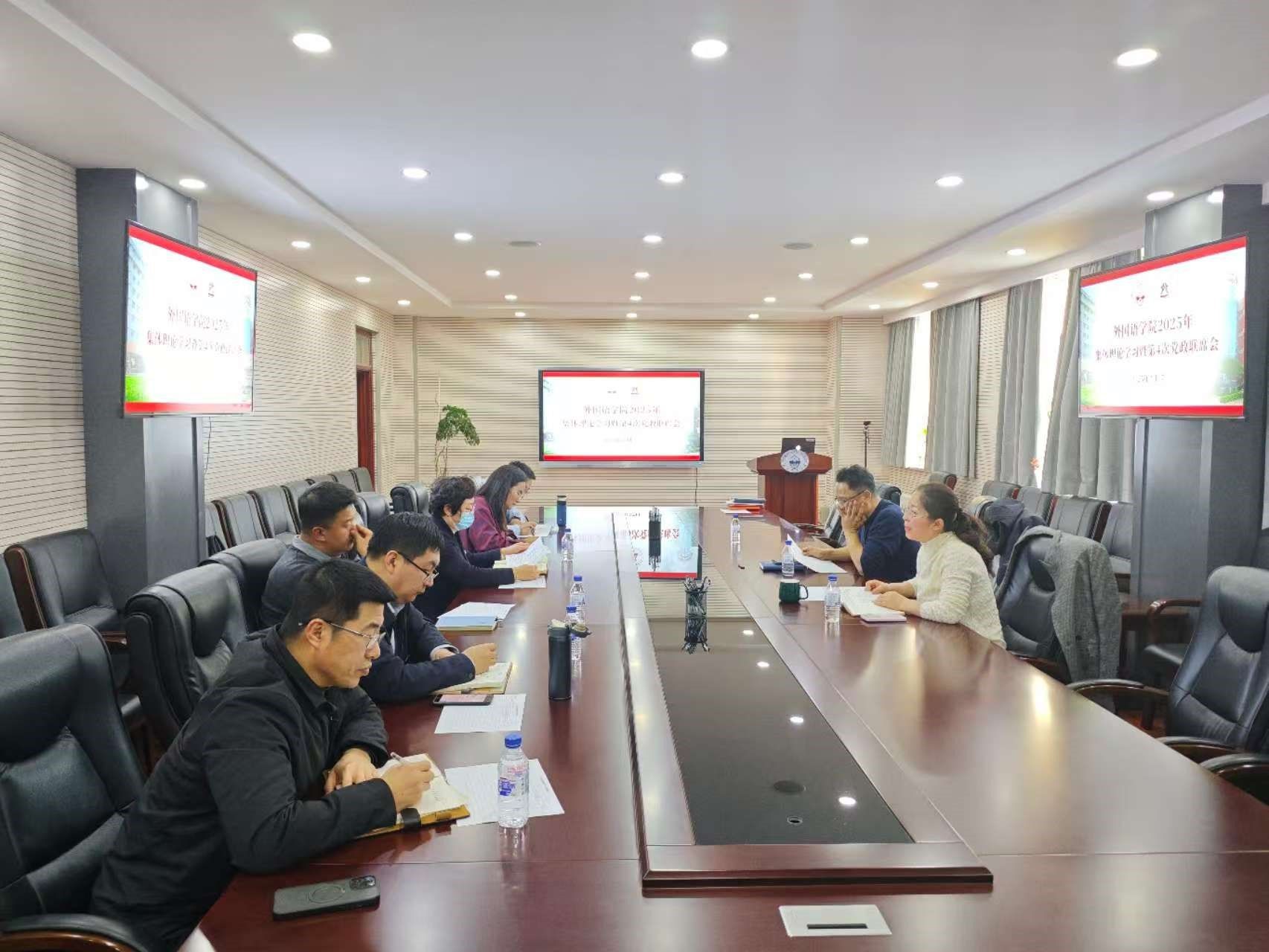 学院党政联席会主要部署了外国语学院2025年度十一项重点工作,包括中层干部活力激发、教师科研意识激活、人才队伍发展、科研项目论证、本科教育教学审核评估、教学成果奖申报、本研人才培养方案修订以及外事工作、优米娱乐公司支撑学科发展与风险稳控、新院址建设与搬迁准备、课时费调研与改革等内容。