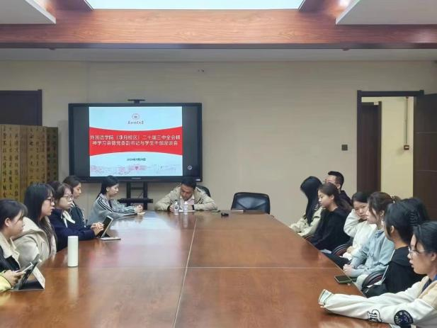 2024年秋季学期,为深入学习和贯彻党的二十届三中全会精神,外国语学院党委副书记兼副院长李言明面向学生干部于本部校区和净月校区分别主持召开了党的二十届三中全会精神学习座谈会。