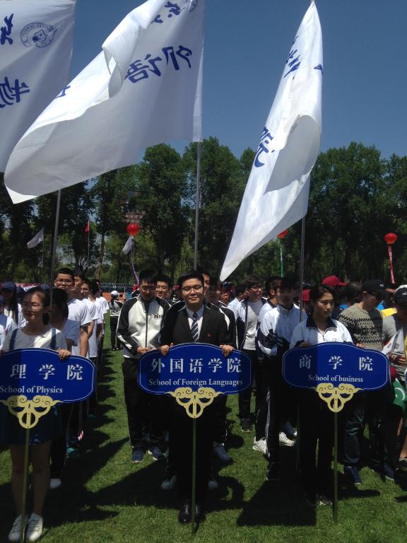 2017年5月27日,我校第五十三届运动会隆重举行。上午8点,随着年丰老师的口号,微团体操“青春的力量”拉开了此次校运会的帷幕。经过了将近两个月时间的训练,外国语学院的太极团队动作整齐划一,气势磅礴,二十四式简化太极拳信手拈来。在年丰老师的引领下外国语学院全体同学进行了师德公约的宣誓:“以德为先,以仁为范,以知为难,以爱为念。”