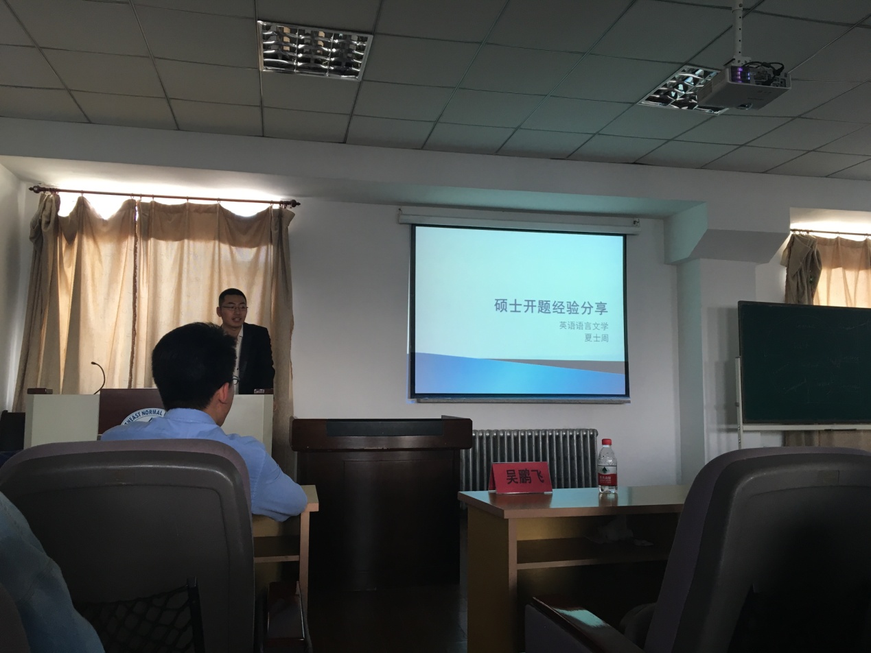 5月23日下午,东北师范大学外国语学院第三十届研究生会于外国语学院716教室,举办了“硕博论坛”之学术论文开题报告经验交流会。交流会由研会主席张毅同学主持,外国语学院2015级、2016级研究生参加了此次活动。