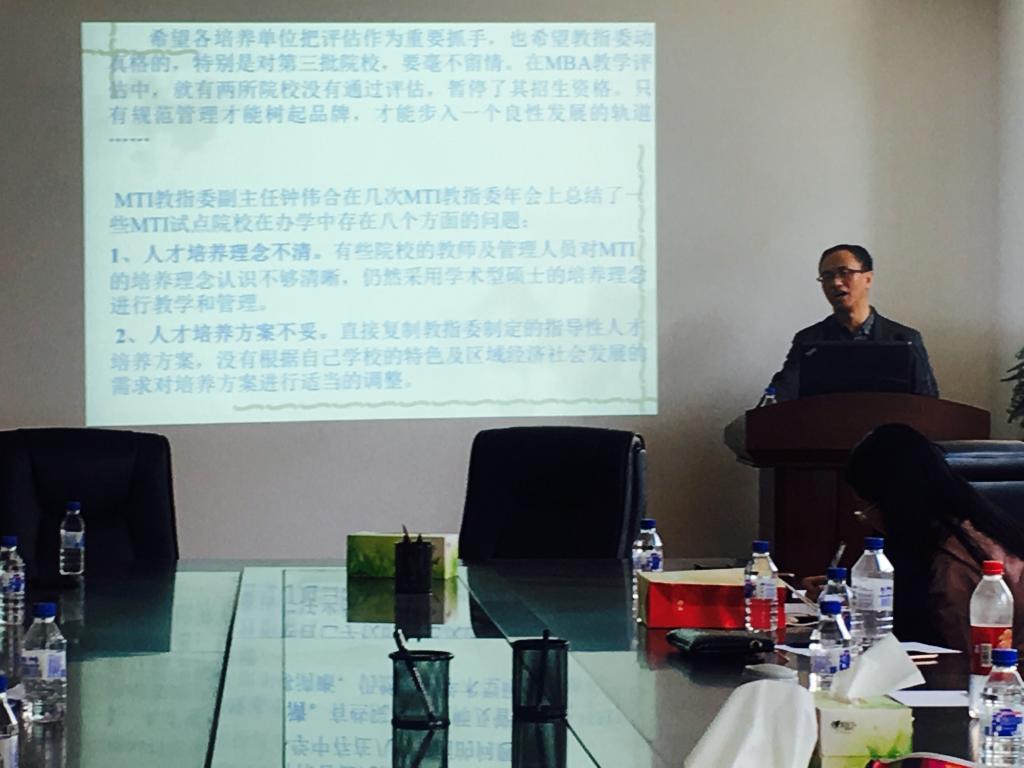 首先,董老师对MTI的办学理念进行了阐述,不仅向大家传达了国务院学位办、MTI教指委的有关精神,还向大家介绍了MTI评估指标体系等。随后,董老师对我院MTI的实践教学进行了深入讲解,主要包括课堂教学和学生实习实践情况等。随后是互动交流环节,董老师为在场的听众答疑解惑,与MTI老师们进行经验分享与交流。最后,讲座在大家的阵阵掌声中圆满结束。