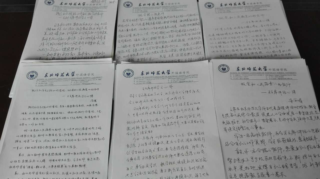 安宏伟书记首先向全体党员介绍了支部委员的分工情况,并传达了《东北师范大学基层党支部工作细则》,着重强调了商务英语系党支部的组织设置、职责任务、组织原则,以及具体的工作制度。其后,全体党员教师共同学习了习近平总书记以“青年要自觉践行社会主义核心价值观”和“做党和人民满意的好老师”为题,在北京大学和北京师范大学师生座谈会上的重要讲话。支部全体党员教师深刻地体会了习近平总书记对广大教育工作者关于勤学、修德、明辨,和笃实的殷切忠告,下定决心树立争做“四有好教师”的崇高信念。会议的最后,各位党员教师根据对学习材料的理解,撰写了学习心得。