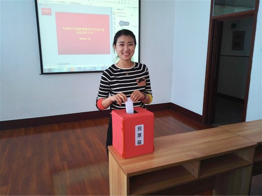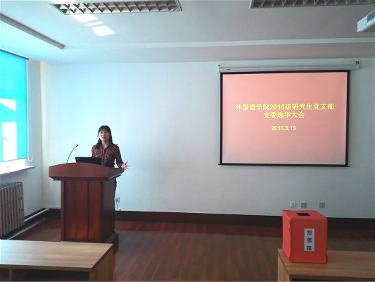 经由上级党委批准,外国语学院2016级研究生党支部首届支委选举大会于2016年9月19日中午12时20分在我院701教室召开。辅导员张来和2016级55名研究生党员参加了本次会议。
