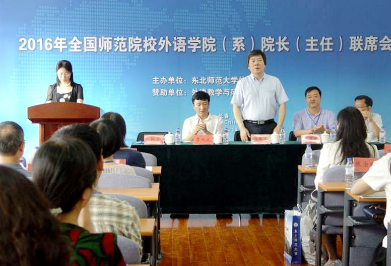 8月13日,2016年全国师范院校外语学院(系)院长(主任)联席会议在东北师范大学外国语学院召开。本次会议由教育部高等学校外语专业教学指导委员会英语分委员会主办,东北师范大学外国语学院承办,外语教学与研究出版社协办。开幕式上,东北师范大学副校长韩东育教授、教育部高等学校外语专业教学指导委员会英语分委会代表李正栓教授、东北师范大学外国语学院院长林正军教授先后致辞。开幕式由东北师范大学外国语学院党委书记狄艳华教授主持。