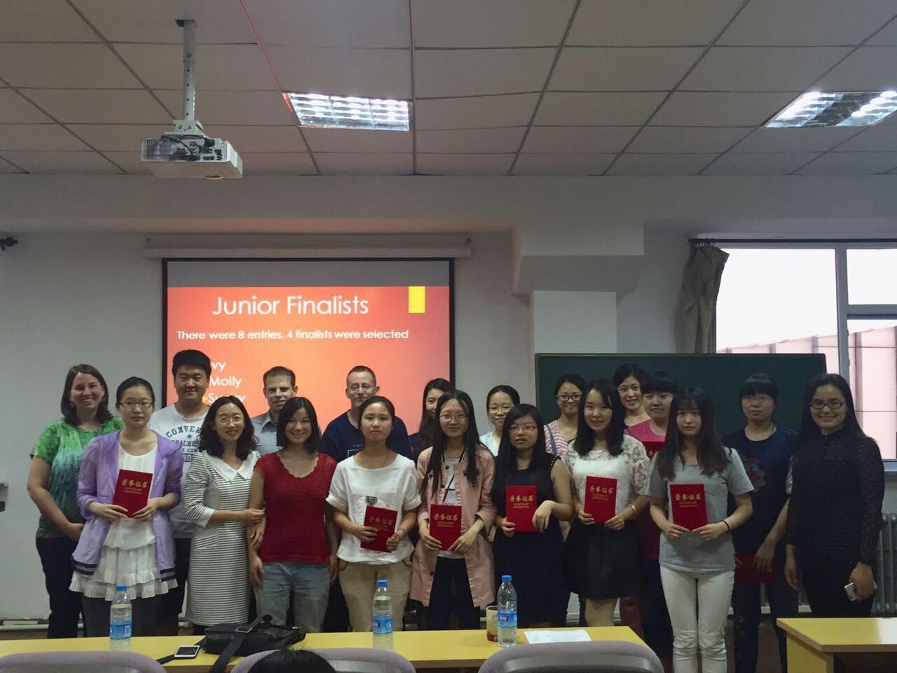 近日,英语系外教Ryan 与 Russ为英语专业学生策划组织了外国语学院首届议论文写作大赛。大赛分为三个年级组,制定了详细的评分规则,由外籍教师Erica, Russ 和Ryan,中国教师陈彦旭,王丽娟,聂爱萍及校外人士Karen作为评委,对上交的几十篇文章进行了仔细评阅。英语系同学积极踊跃参加本次活动。