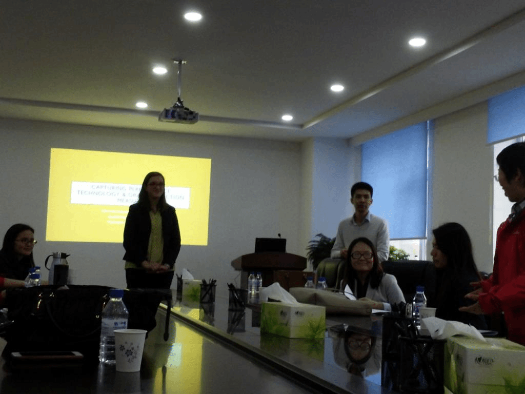 5月12日下午,外语学院语言学工作坊在427会议室成功举办。本次语言学工作坊主题为“Capturing Performance: Technology & Oral Production Measures”,由来自美国华盛顿大学的应用语言学博士Wei-Chieh Fang,Haley Dolosic和Huan Liu进行学术汇报与交流。学院部分青年教师、博士研究生生与硕士研究生参加了此次活动。