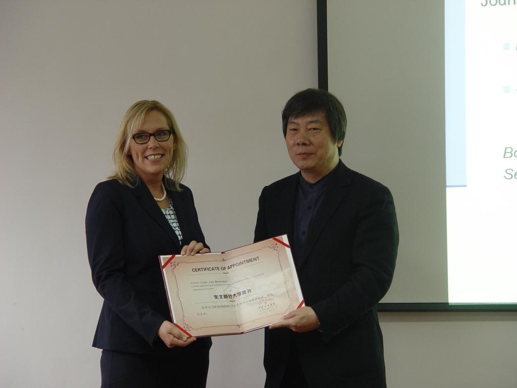 5月12日下午,外国语学院校庆、院庆系列学术活动第六场活动在本部701教室成功举办。本次学术报告主题为“The Complex Process of L2 Reading: Theory and Research”,东北师范大学韩东育副校长、外国语学院林正军院长以及多名来自语言学及二语教学方向的教师和学生共同参加了本次讲座。讲座过后,韩校长为Cindy Brantmeier教授颁发了我校客座教授聘书。