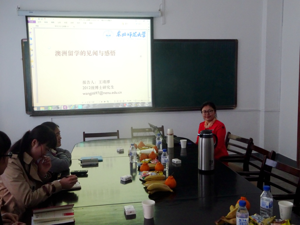 本次沙龙分为两个部分。首先,两位主讲人与大家分享了自己的学习经历和研究进展。2012级语言学方向博士生王靖潭介绍了她在澳洲留学的见闻和感悟,2015级文学方向博士生崔丹汇报了她对惊悚小说研究的新视角和新思路。然后,两位嘉宾对博士生们在国际交流、论文写作、论文发表、职业规划等方面遇到的疑问和困惑一一进行耐心的解答,并给出中肯的建议。