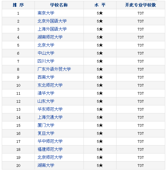 近日,中国科学评价研究中心(RCCSE)、武汉大学中国教育质量评价中心联合中国科教评价网(www.nseac.com)发布了《2016年中国大学及学科专业评价报告》。报告中“中国大学本科专业排行榜”,开设高校数最多的专业为英语专业,共有737所参评。