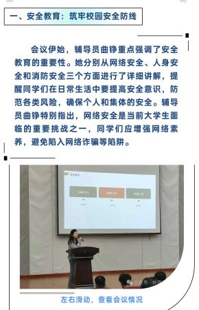 年级会聚焦:多维安全教育深入人心。外国语学院多年级召开年级会。会上,辅导员就学生宿舍安全问题进行了深入教育,并以公众号形式广泛宣传。辅导员们始终将学生的安全放在首位,努力为学生营造一个安全、健康的学习和生活环境。