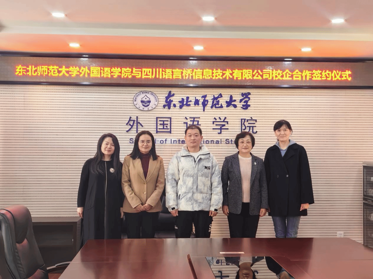 2025年4月2日下午,我院副院长曲英梅教授、副院长高国翠教授、翻译教学与研究中心主任王畅及副主任朱丽娟与四川语言桥信息技术有限公司校企合作事业部区域经理周海丰就双方合作事宜进行会谈,并签订校企合作协议书。