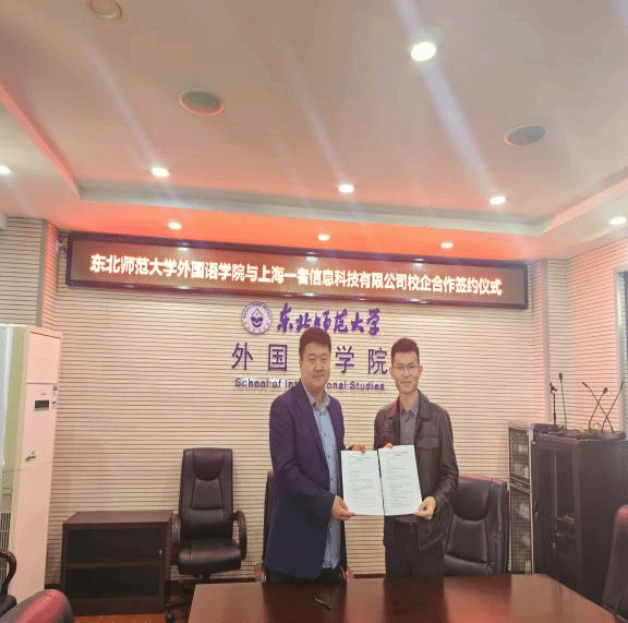 2025年4月22日下午,我院副院长陈彦旭教授及翻译教学与研究中心主任王畅与上海一者信息科技有限公司CEO张井及运营总监陈世遥会谈,并签订实习实践基地协议。