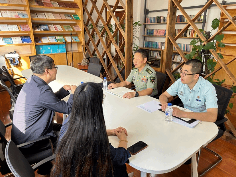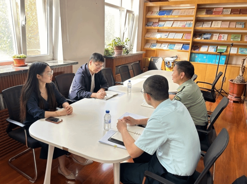 为促进研究生高质量充分就业,推动人才培养与强国建设需求同频共振,外国语学院积极开展“访企拓岗促就业”工作。2025年9月10日,中国人民解放军国防科技大学鞠金春上校、张进教员到访我院,双方围绕就业招聘等领域深化合作等事宜展开交流,学院党委副书记兼副院长仇云龙、就业专员唐燕平参加了本次座谈会。