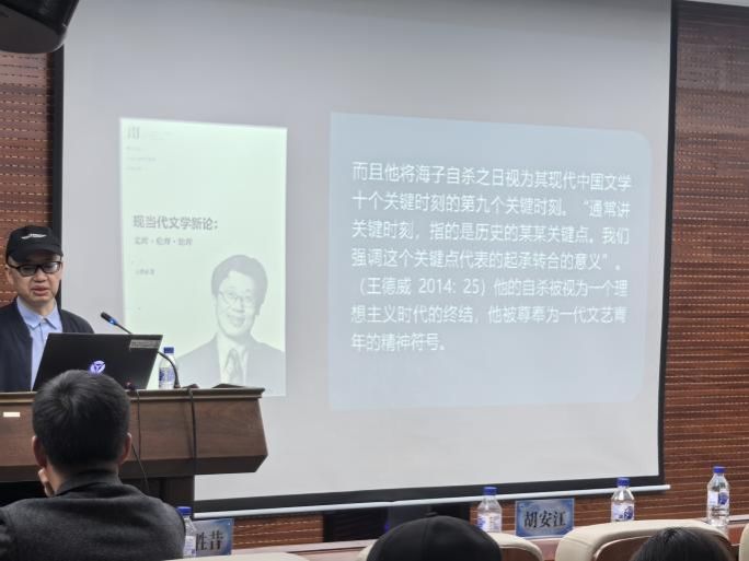 讲座中,胡安江教授从“抒情化、符号化、音乐化、经典化”四个维度,系统梳理了海子诗歌在国内外的接受与传播路径。他指出,20世纪80年代以来,评论界与大学生群体的抒情化解读,使海子逐渐被“符号化”为承载“远方、流浪、还乡”的精神象征,而“诗人之死”的神话更推动了公众崇拜与出版热潮。在传播层面,部分海子诗作被谱曲传唱,形成独特的“音乐化”现象;2001年《面朝大海,春暖花开》入选高中语文教材,更推动其“经典化”进程。在海外传播方面,胡教授结合个人研究,分析了海子诗歌通过诗集出版、文学史书写、期刊发表和网络发布等多种方式走向世界的历程,强调译介在跨文化传播与文学经典化中的重要作用。