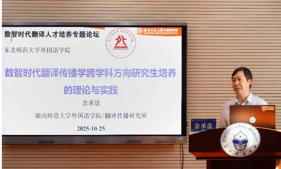 2025年10月25日,我院成功举办“数智时代翻译人才培养专题论坛暨DTI申报研讨会”。多位专家学者齐聚一堂,围绕数智赋能背景下的翻译人才培养与DTI建设展开深入研讨。外国语学院院长高瑛教授、杨忠教授、副院长金万锋、学院教师以及学院硕士、博士研究生参加了本次论坛,开幕式由副院长徐彬教授主持。