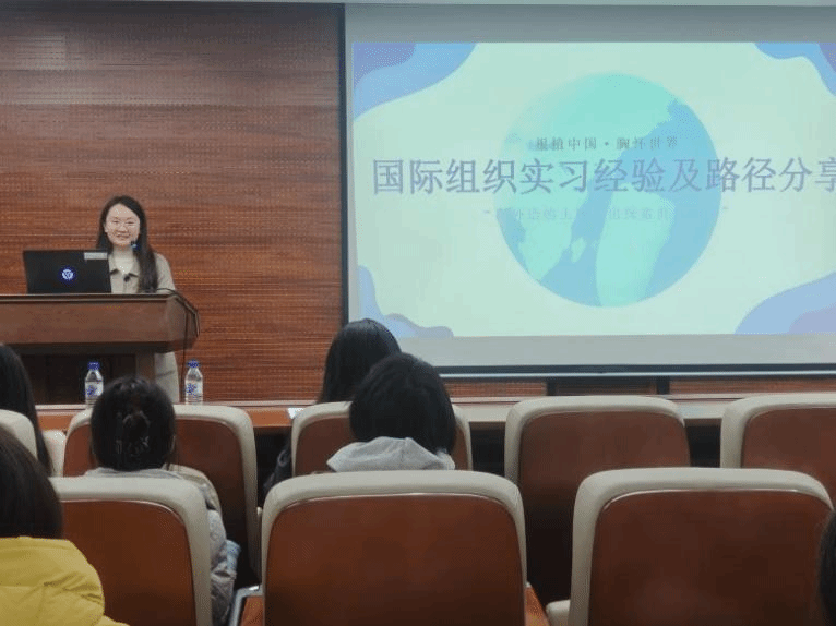 活动开始前,研究生会指导教师刘晨向在场学生介绍优秀校友王迪——我校首位踏入联合国进行系统实习的优秀校友。她讲述了王迪在校期间树立远大职业理想、积累跨文化交流经验并在国际舞台脱颖而出的励志经历,激励全体外院学子以她为榜样,用专业讲好中国故事、推动文明交流互鉴。