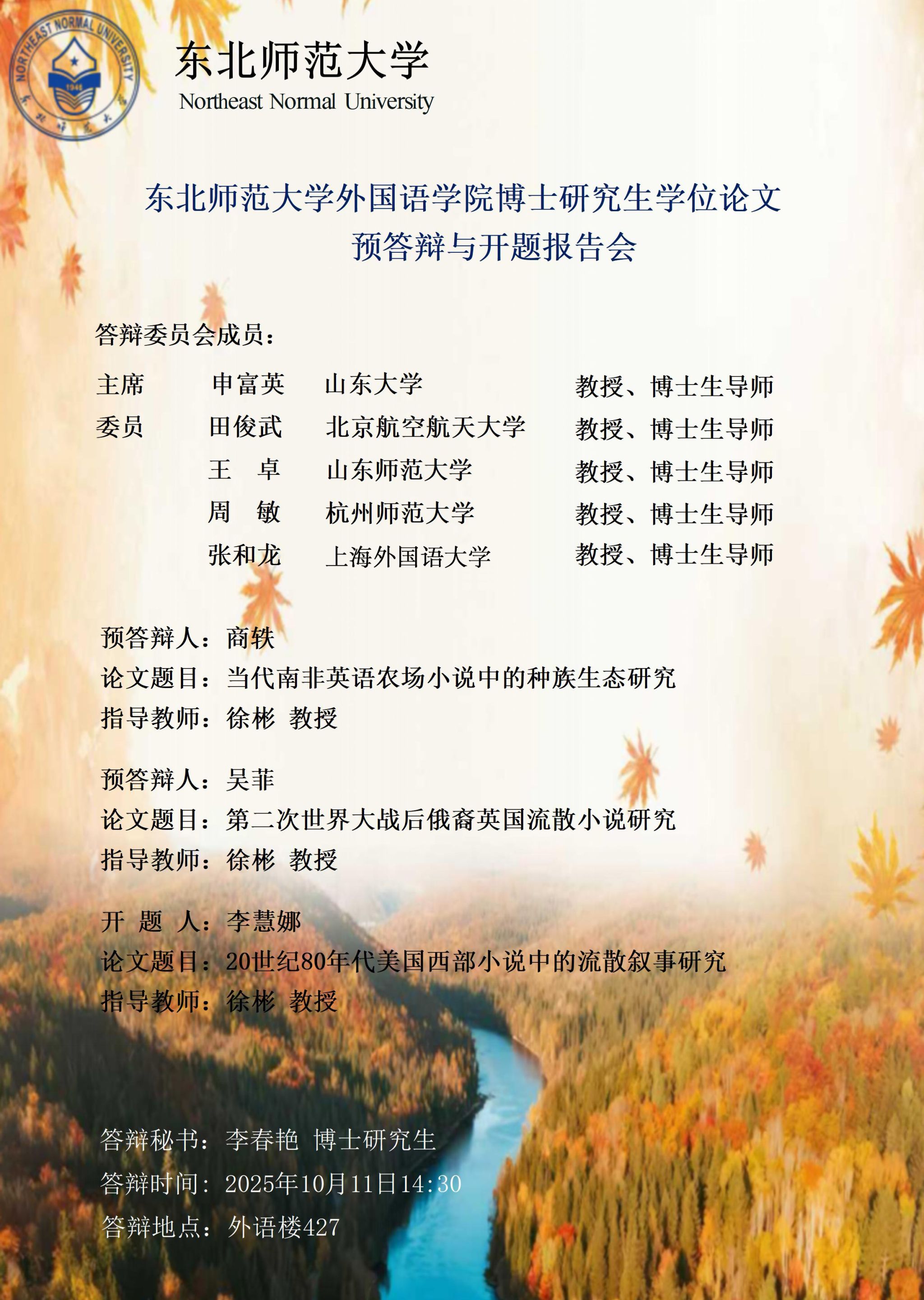 2025年秋季学期博士学位论文开题、预答辩报告会——英语语言文学专业